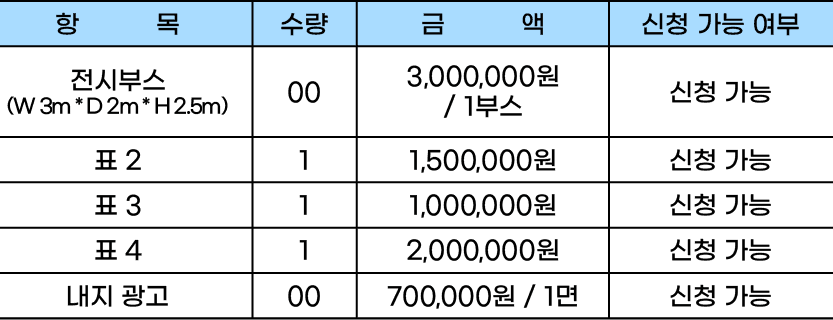 * 표지 광고(표 2-4)는 선착순으로 마감될 수 있습니다. 즉, 해당 항목으로 후원 신청 접수 후 반려될 수 있는 점 양해 부탁드립니다.